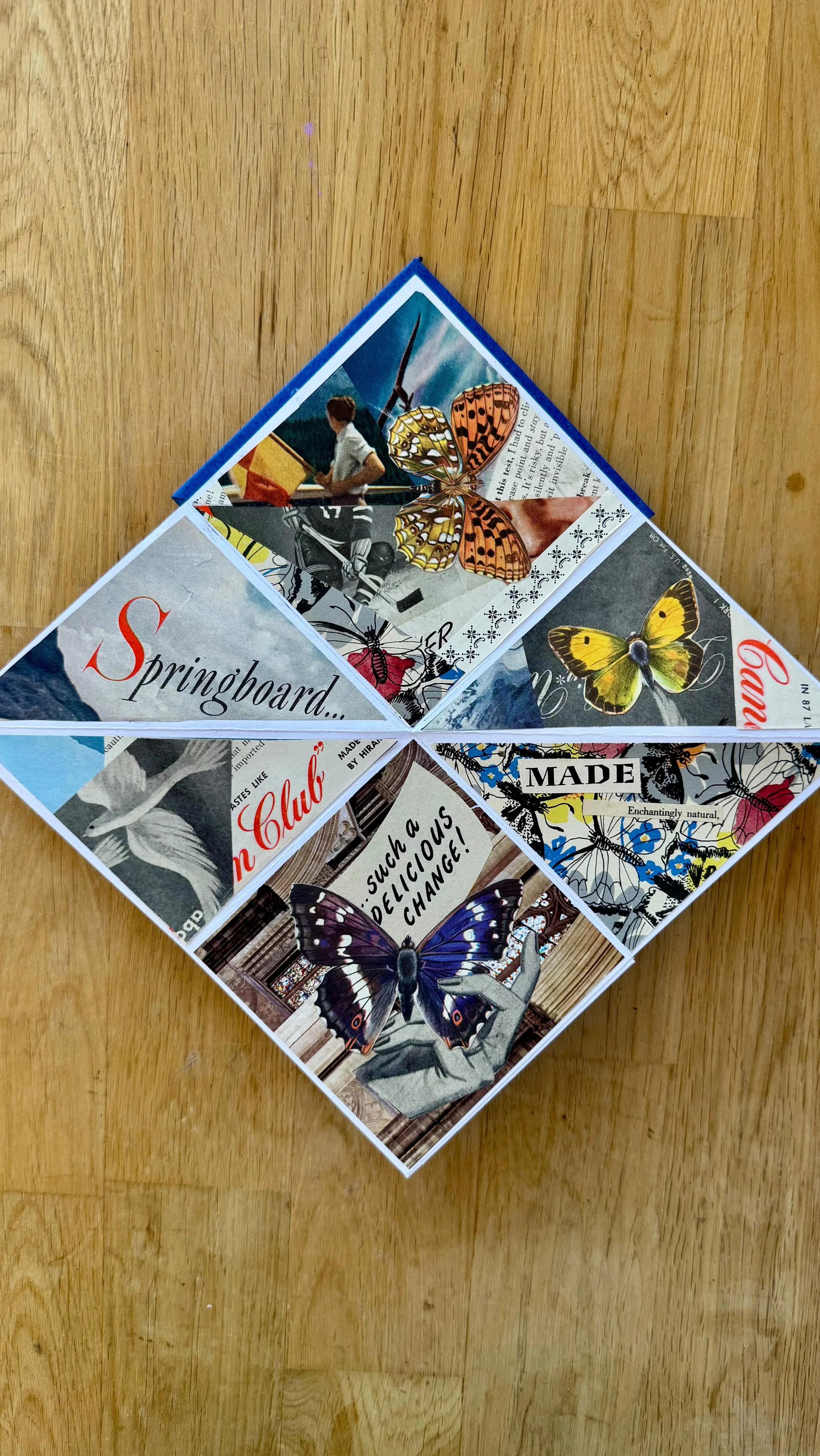 Through collage and bookmaking workshops, we support people to pause, make with intention, and reconnect with themselves through paper and process.